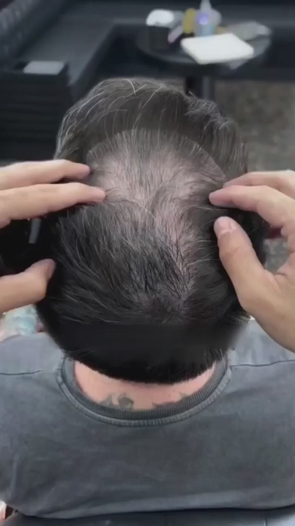 Vårt hårpuder är ett kamouflagepulver som omedelbart och magnetiskt binder sig till varje hårstrå – även de mikroskopiskt fina, osynliga hårstråna – och täcker tunna och kala fläckar på bara 10 sekunder. Ingen kirurgi, inga långa behandlingar. Helt enkelt naturlig fyllighet som ser helt äkta ut.